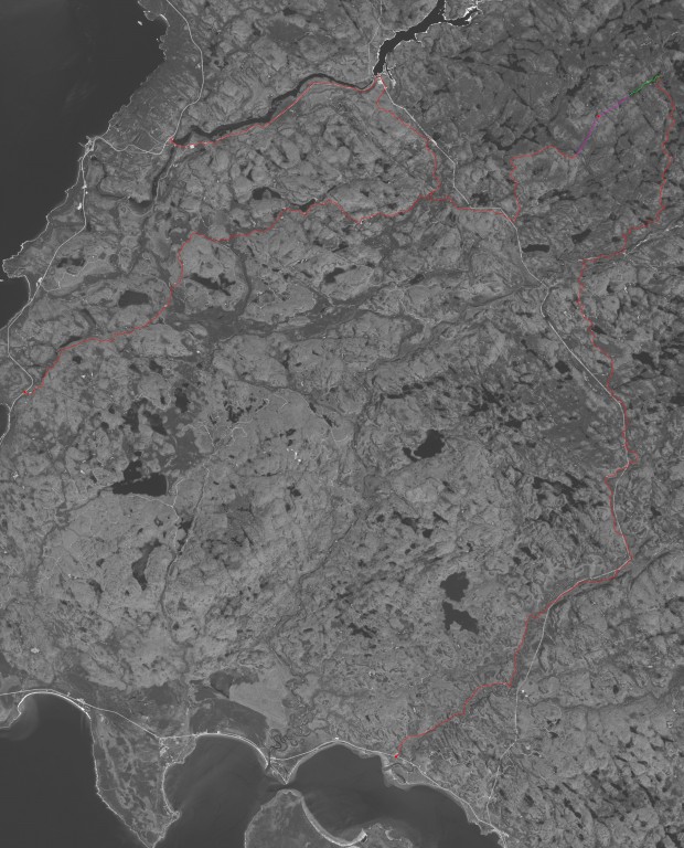 00.0 km – Beginning of bushwhack at Mile 67 Road (11:20 AM)