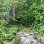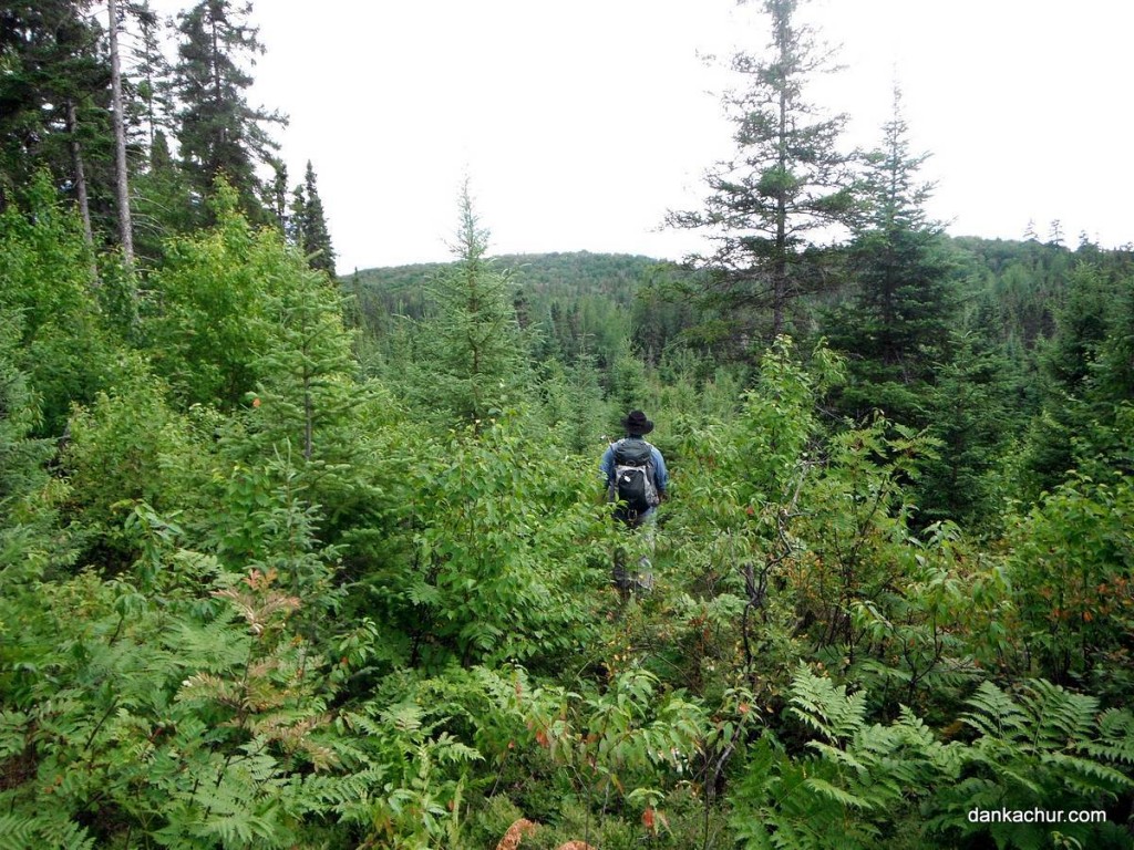 I left Sudbury in the afternoon of August 7th, as the forecasted rain had given me reason to abort my plans to hike Mt. Belvedere earlier in the day. Near Spanish, a river had overflowed it’s banks and flooded Hwy 17. There were a few inches of water across the road for about 100m, but cars were making their way across safely. All this water was not a great sign for the next day’s hike.