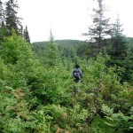 00.0 km – Start of bushwhack through clearcut regrowth (2:05 PM)