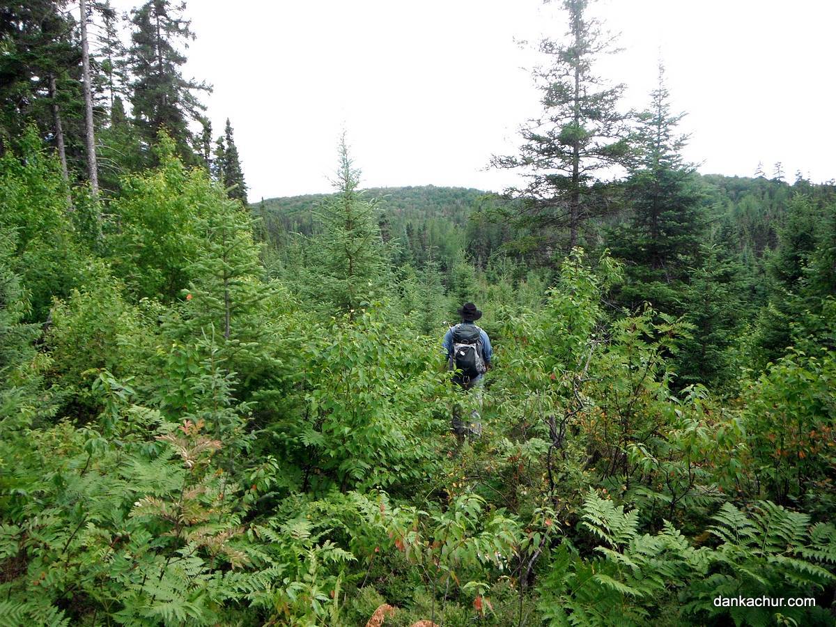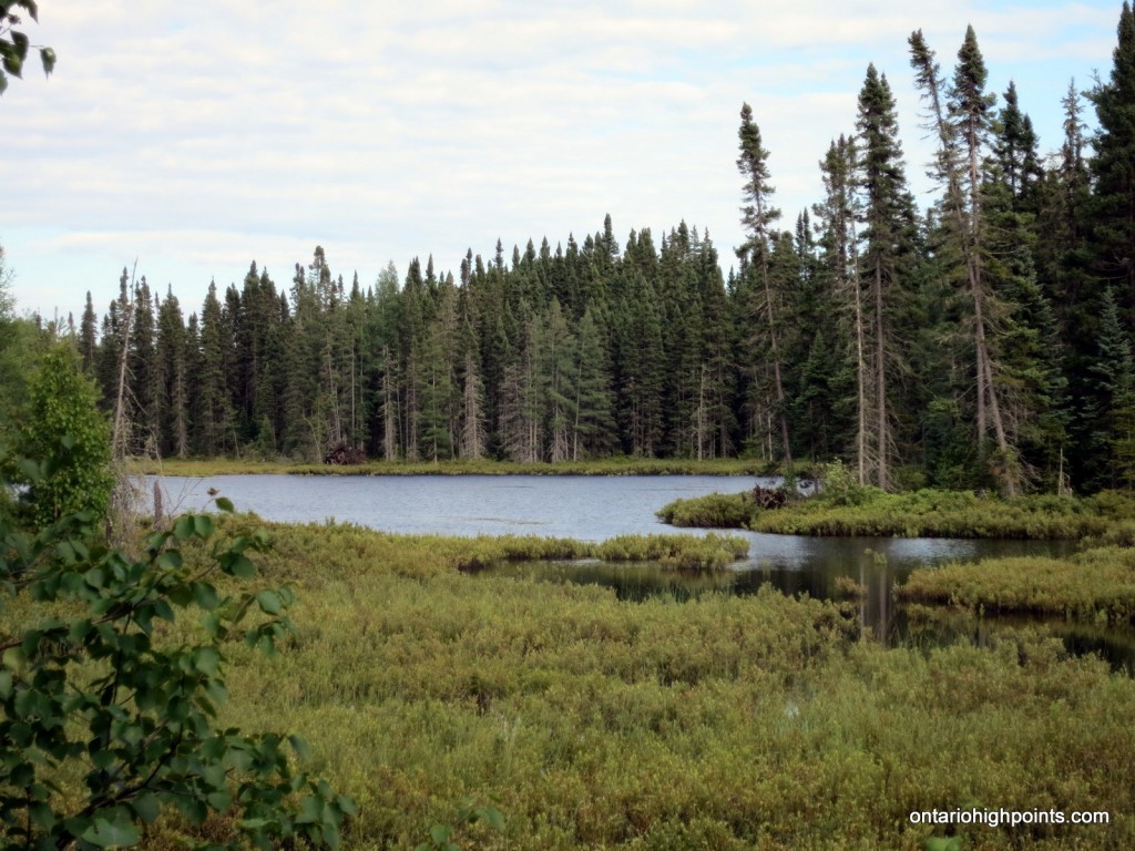 The hike begins in a partially open forest regrowth area. Skirt the wetlands to the west by heading north until reaching N47 36.391 W84 18.809, then head west across a small creek and then proceed on a direct course to the peak. Once across the creek, the rest of the hike is through mixed forest until reaching the summit.