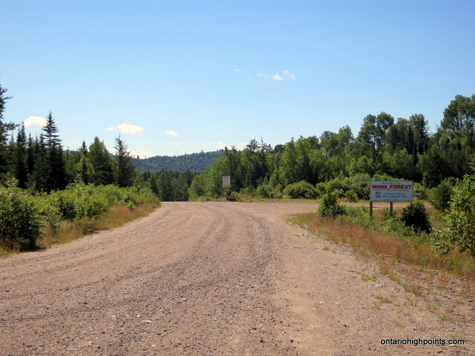The day was shaping up to be a much nicer day than the previous rainy day. We reached Wawa for gas and then continued eastwards along Hwy 101. As short drive later, we reached the turnoff onto Tik Lake Road, and with no one else around began the drive south along the nice wide gravel road.