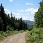 5.0 km from the intersection of Tik/Crossover, the road passes within 1.2 km of Mt. Baldy, which has a fire tower on top. There might be some washouts that need to be navigated along this road. 12.5 km from the intersection of Tik/Crossover turn right (south) onto Beaupartlant Road.
