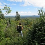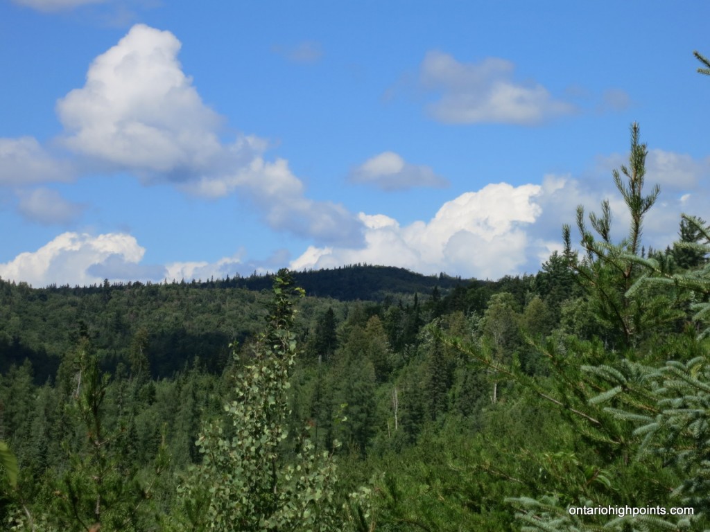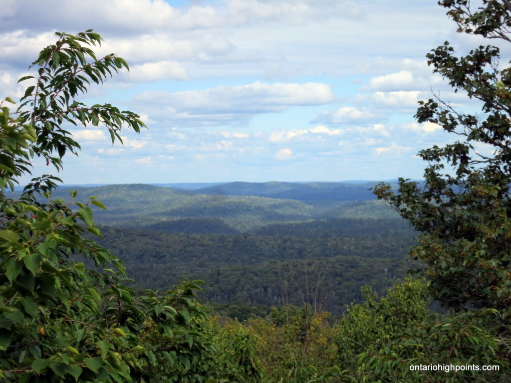 There are good southerly views atop a rock ledge at the south edge of the summit area at N47 36.921 W84 19.387. The summit is partially open, but has limited views to the east.