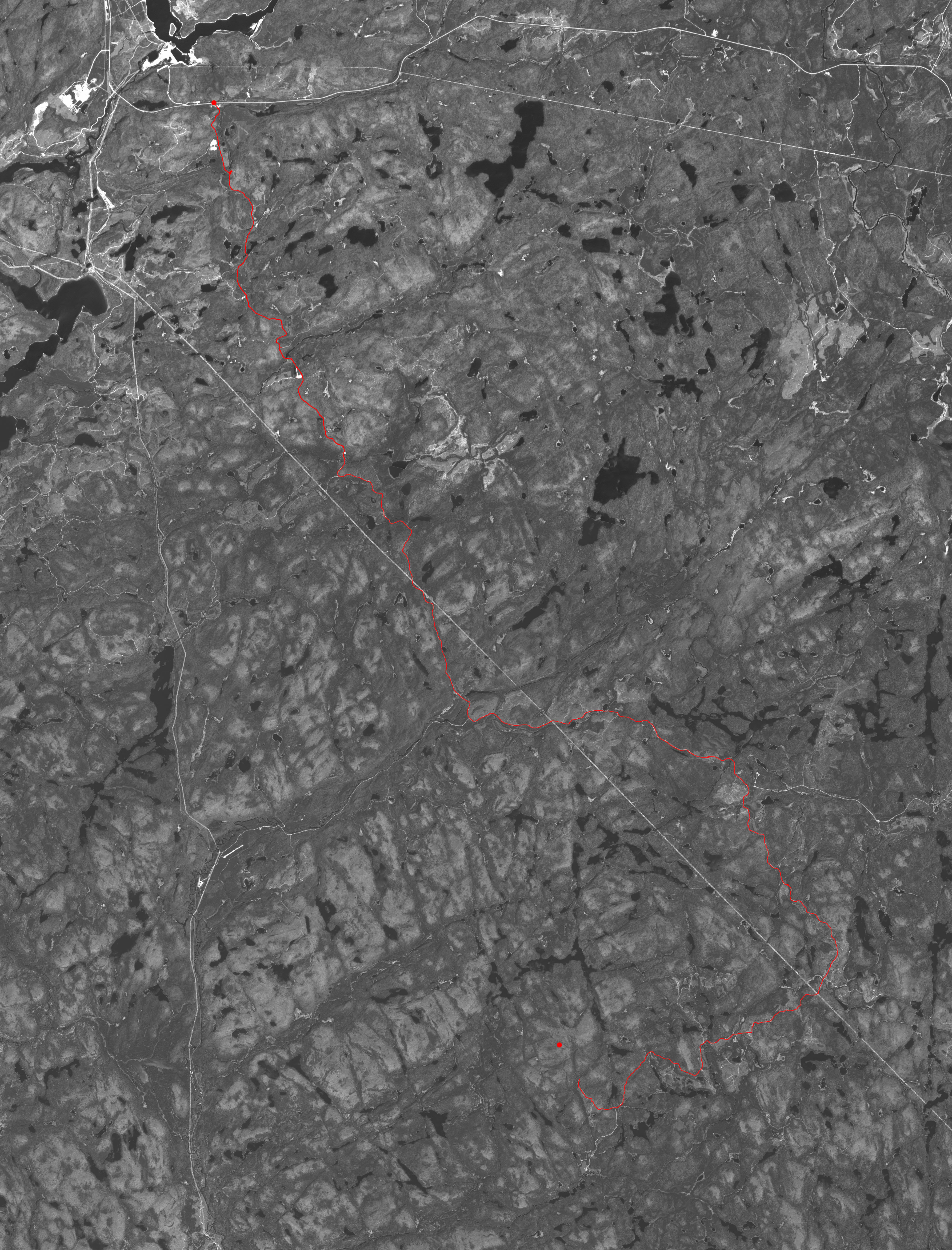 Satellite Image with Route in Red (Courtesy of geobase.ca)