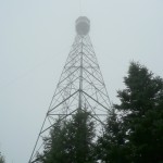 The Aldina fire tower stood before me, amid the fog and the rain. It was in great condition and I saw that the MNR had not bothered to remove the ladder up to the observation box (as is their custom). I took the usual summit photos, fighting to try to keep my camera dry, and waypointed what I felt to be the highest point on the mountain. Just in case, I followed the trail down the backside of the summit to confirm that I really was at the summit. The trail descended and did not appear to gain any elevation.