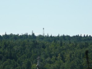 Aldina fire tower atop Carson Creek Peak from the Boreal Road (Zoomed in)