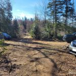 Although rough in a few places, driving carefully, the Dagger Lake Access Road should be navigable for most cars. 8.3 km from Livingstone Lake Road, there is a fork in the road. Take the left fork and follow it 0.2 km to the large grassy parking area before the “No Cars Or Trucks Beyond This Point” signage. If parking here, backtrack 0.2 km to the fork and take the road south. In the spring the Dagger Lake Access Road could be flooded in spots and the muddy conditions could make the road unnavigable for some vehicles. In this case, there is optional earlier parking area at kilometer 3.6 (from Livingstone Lake Road) — continue on foot/bike for 4.5 km to the first fork and turn south (right).