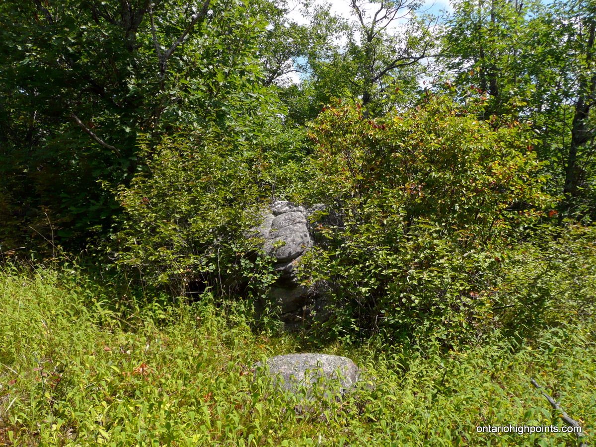 Rock marking the highest point on Evergreen Mountain