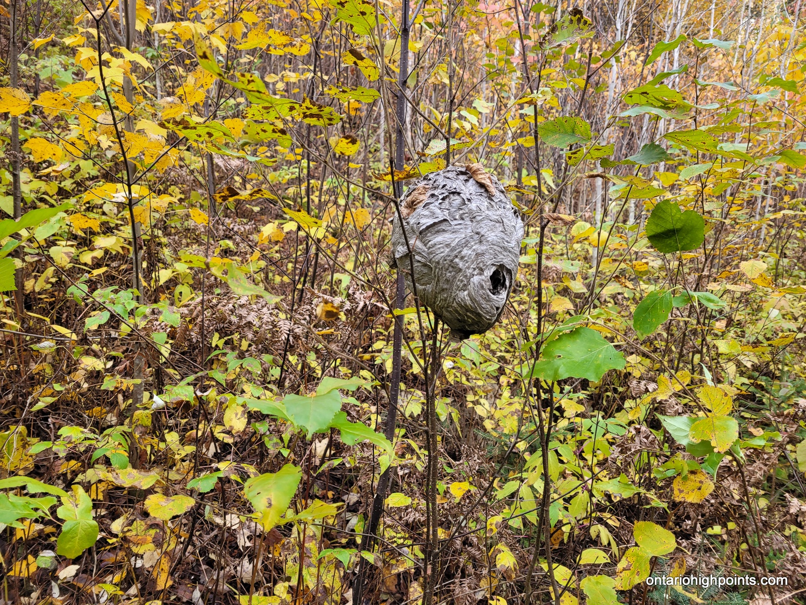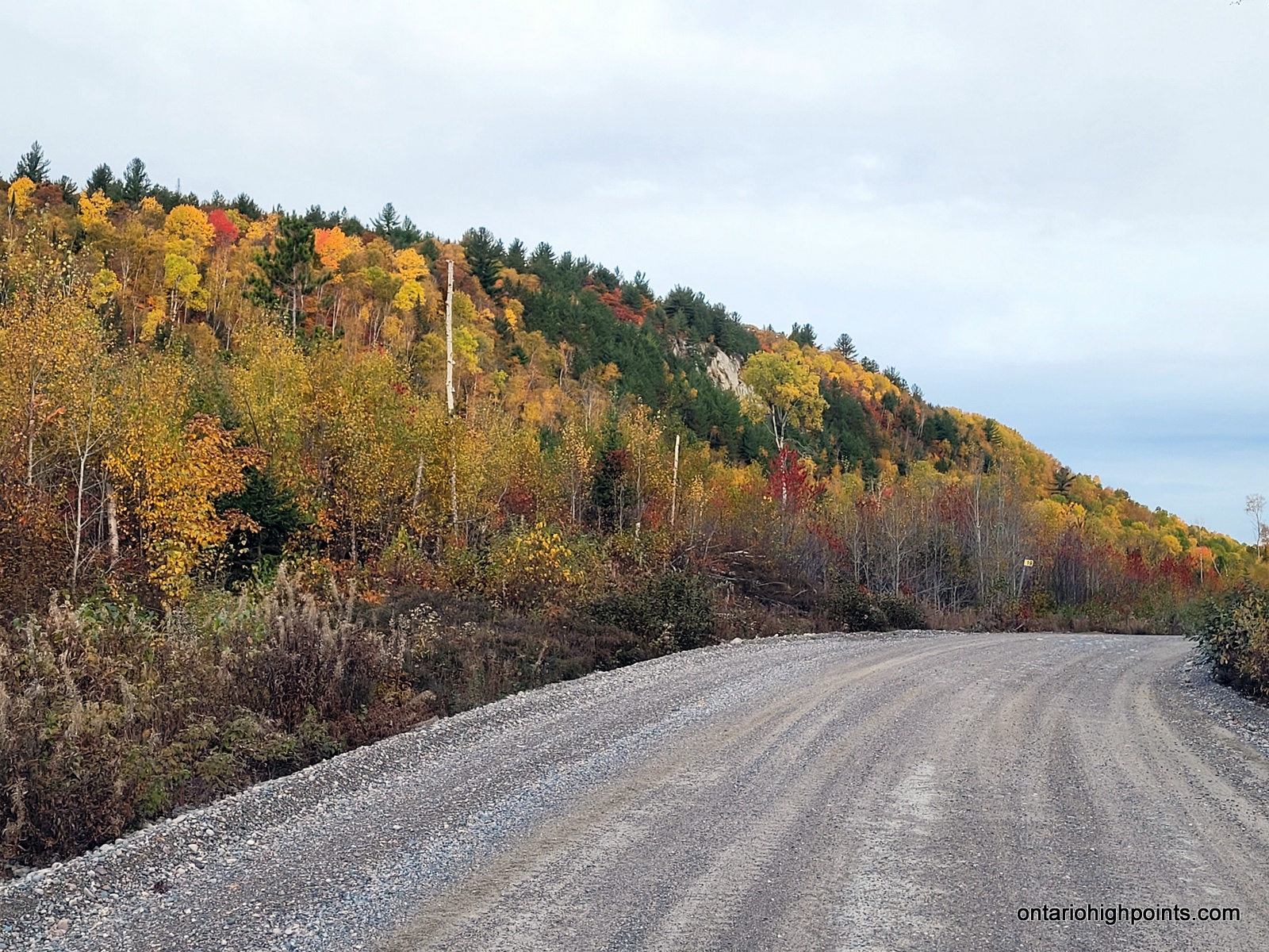 The first 5 km of the dirt road is fairly wide and well traveled by the residents of the Wahnapitae First Nation Reserve. The road forks at the Wahnapitae First Nation Reserve sign. Take the left fork and proceed along the road which runs in a north-northeast direction for 15.5 km until meeting up with the Wanapitei River. Do not cross the River at the bridge here, but continue along the west shoreline of the River for another 2.8 km until reaching the base of Fraleck Ridge, at N46.92564° W80.85374°. Roadside park here.