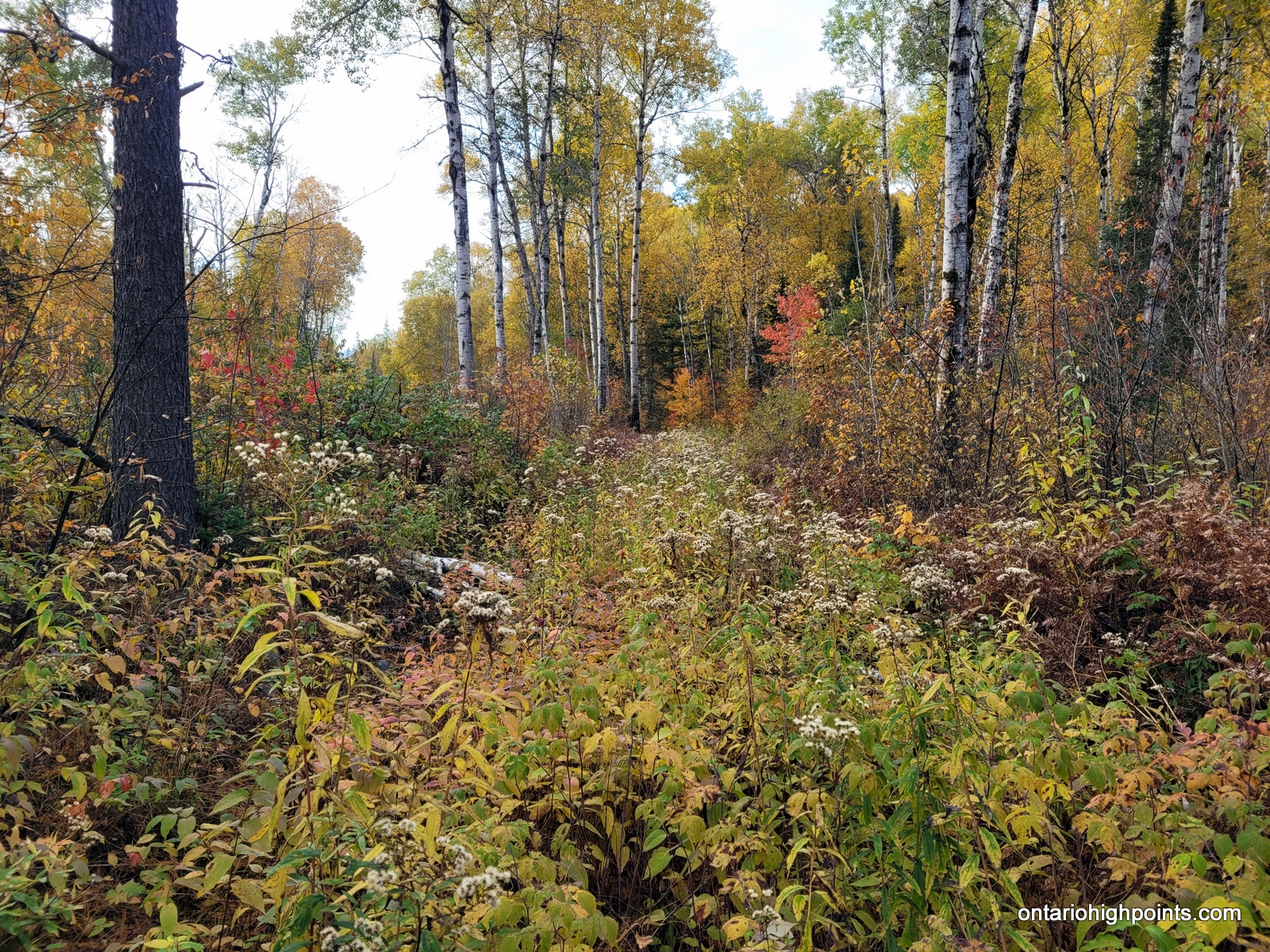 0.4 km – Turned west on overgrown skidder path (9:05 AM)