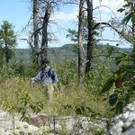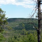 The summit has no easily recognizable high point, but at N48 17.780 W90 07.312 a cluster of trees seems to mark the highest point of the mountain. Proceed east to views of the southern approaches and views of Tower Mt.