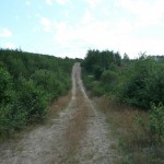 Initially I decided to park my car at the turnoff to the 2-track road and travel in on bike, because there was quite a bit of growth in between the 2 tracks — this road obviously didn’t see a lot of traffic. But after biking in about 1 km, I decided that the road itself was in good enough shape and I could drive it if I was careful and avoided any undercarriage scrapes. I turned around and got the car and started my way in. At one point a tree had fallen across the road, and luckily I had brought my machete with me, and despite the fact that the machete is a complete piece of crap I was able to make short work of the tree.
