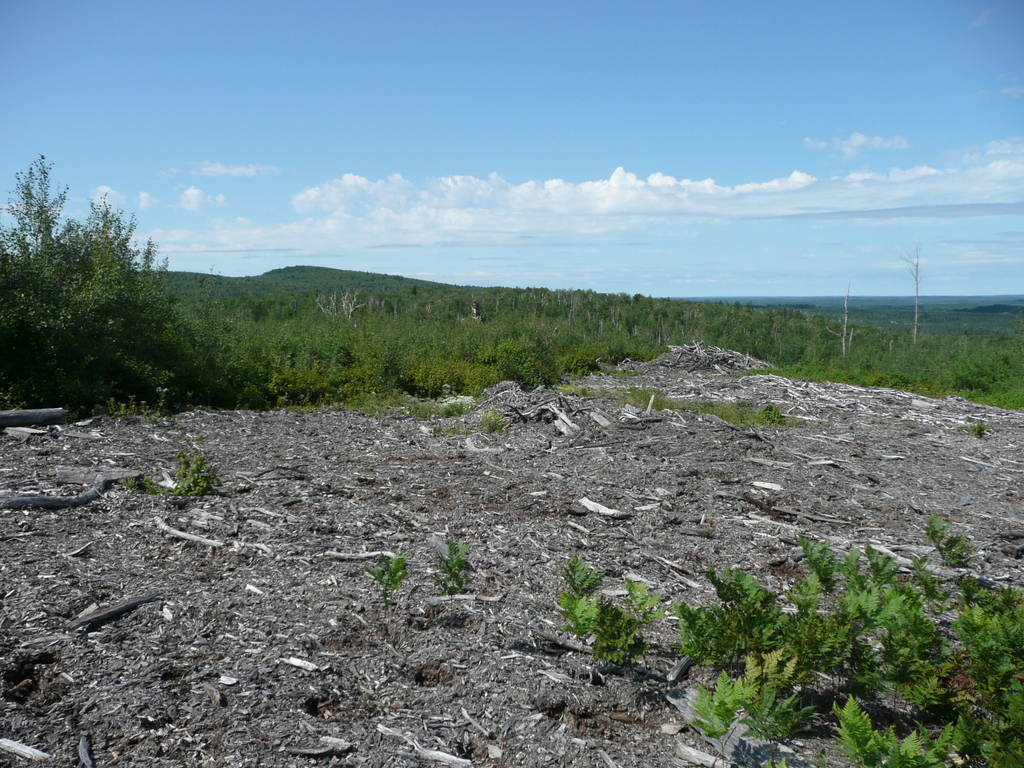 End of the road, lumber debris with Head Lake Peak West in the distance