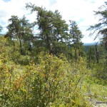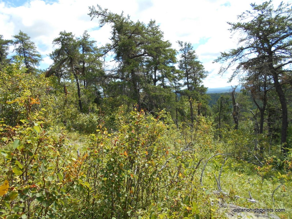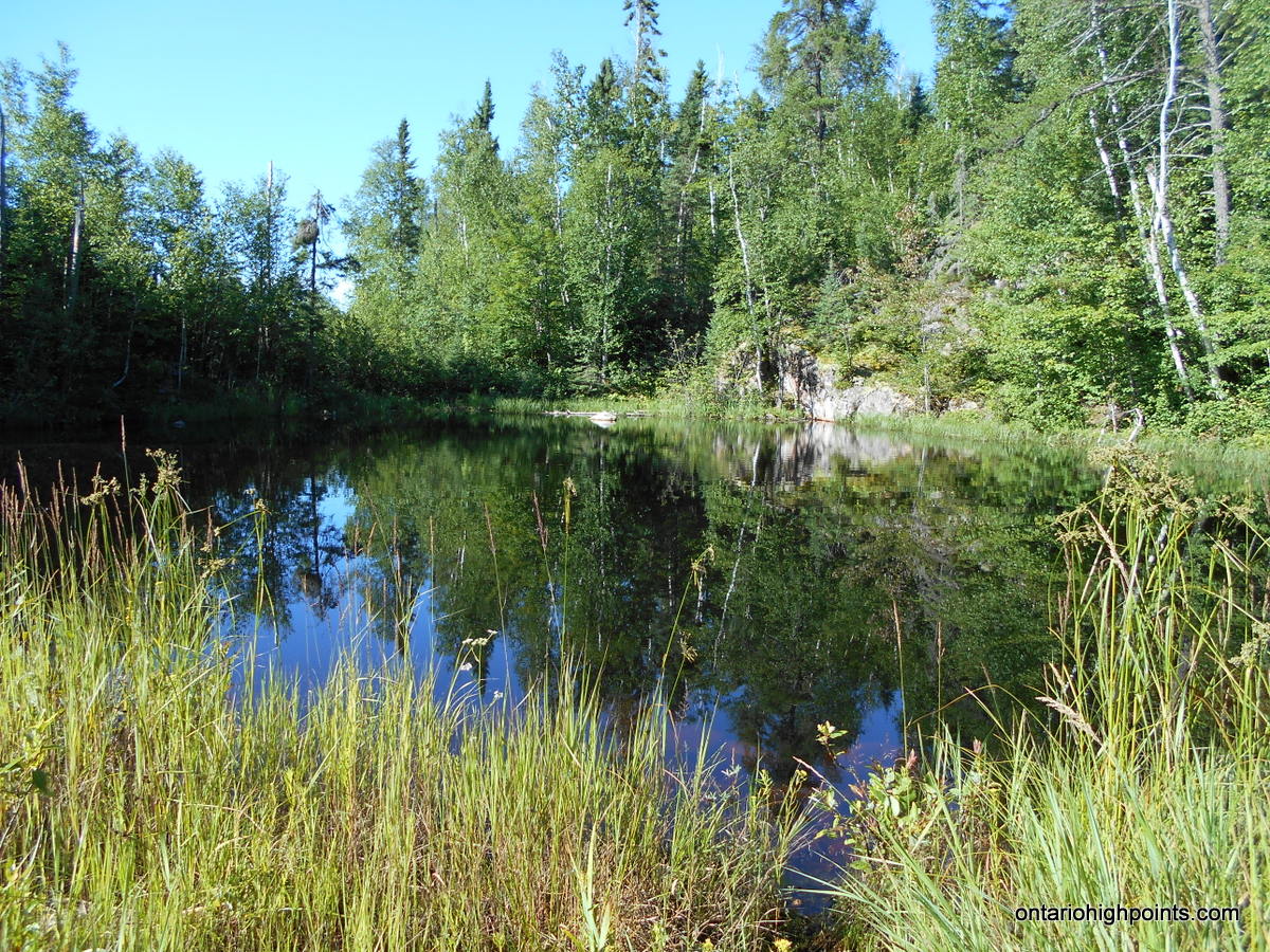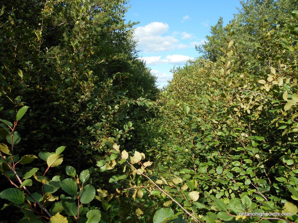 Stay on Marks Lake Road for 3.4 km until arriving at a left turn (south) onto a narrow overgrown quad path. As of the time of this report (July 2016), this road is almost completely overgrown, so you’ll need to park at this intersection (N48 22.339 W90 06.701) and proceed on foot. Follow this overgrown road southward, turn right at the fork at kilometer 4.6, and then left at kilometer 5.0. Proceed to the T-Junction at kilometer 8.0. The road on the right makes its way south towards Head Lake Peak East/South, whereas the left road goes east towards Tower Mt.