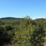The ‘whack’ to Head Lake South Peak was made difficult due to the thickly forested understory — it took over an hour to go 1 km. The summit was more openly forested and had some limited views. We found the highest point fairly easily –a lichen/moss covered road outcrop at the center of the contour.