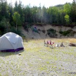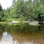 After 2 hours of driving along the multitude of logging roads, we arrived at the gravel pit, just shy of the Sturgeon River. We made camp, explored the area a bit, scrounged for wood and walked down to the river to investigate the water levels. As we suspected, water levels were way down. With sandals/water shoes we could easily walk across the river along a crest of gravel and rocks.