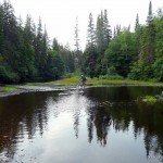 When I reached the Sturgeon River, I changed into my crocs and made the crossing. It was only a few hundred meters further to our campsite. A few minutes later, Darcy reached the river’s edge. He opted to not change out of his boots and walked his bike right across, soaking his feet in the process. In another 2 minutes we would be back at the campsite.
