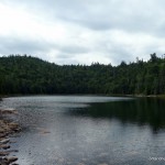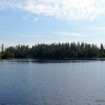 We left the campsite and quickly arrived at the trailhead. The area at the start of the trail was fairly open as there had been a small bush fire here, but nature was returning: wild raspberries and blueberries were everywhere. We climbed a small hill and made our way to the first lake on route. We encountered a trail branching to the right which led down to the lake, but we kept to the left fork which brought us over large boulders along it’s west shore. The trail was easy to follow except for the occasional blow-down requiring us to go around.