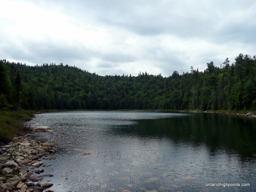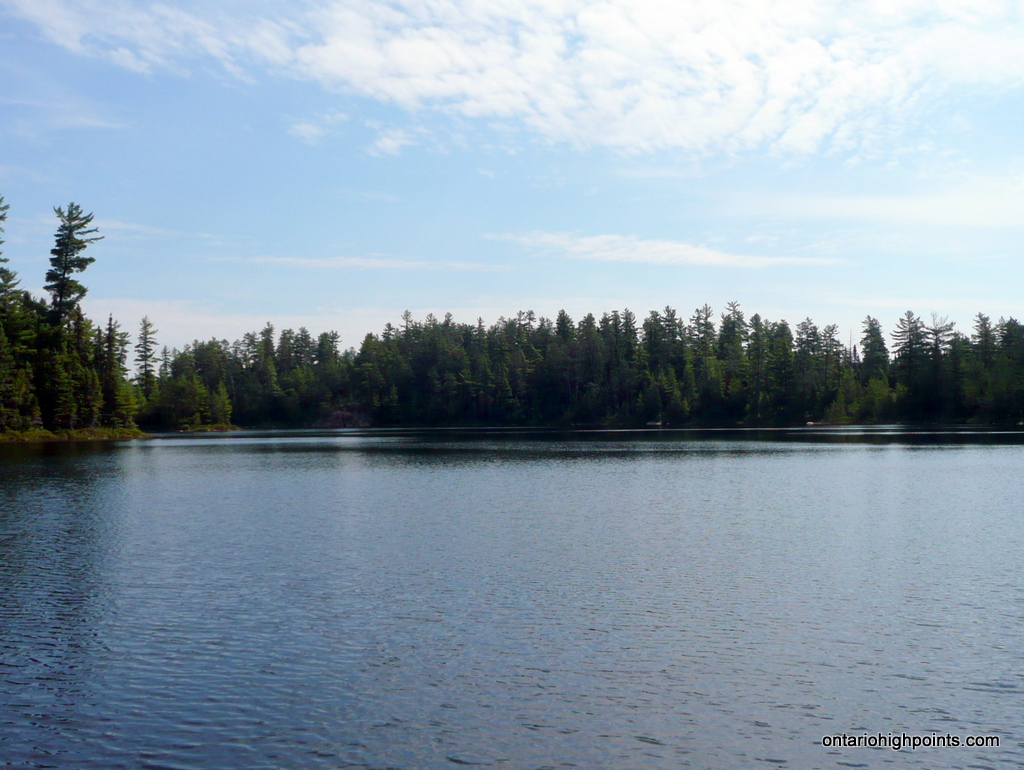 2.4 km from Scarecrow Lake, the trail gains the top of a ridge. This would be the most advantageous place to start the bushwhack to Ishpatina’s South Peak. The trail then descends slightly to Dick Lake, the third and final lake on the route to the summit.