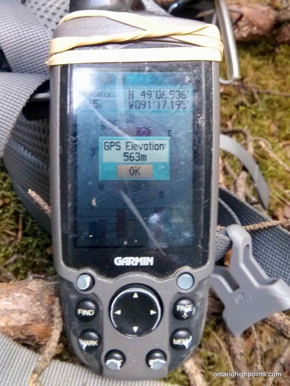 The second candidate high point area is 700 meters to the northwest. There are 2 points at this second area, and it was our consensus (using own non-accurate measurements) that High Point Candidate #2A at N49 07.144 W91 17.655 is the highest point in Kenora District.