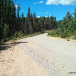 After biking 7.3 km, we linked up with the new and freshly built Caldwell Road, which runs 70 km north from Hwy 11. Upon seeing it, we concluded that we probably could have driven up this road and saved ourselves 16 km (with return) of bike riding had we had known it’s present good condition.