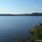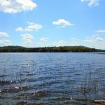 There were a lot of bugs at the summit, which kept us moving. After a brief rest, we started on our return. Making quicker time on our descent, we arrived back at the shore of Little North Lake. The waves were picking up out on the Lake. As we hiked east along the shore, we saw a boat out on the lake. I waved, but I’m not sure they saw us between all the trees.