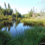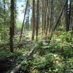 Once back at the railway bed trail, the conditions seemed to improve and we were able to hike through several grassy meadow sections. A short time later, we arrived at Little North Lake and made our way to the designated GPS coordinate for the start of our bushwhack. Most of the bushwhack was through open forests, but over and around a copious amount of deadfall. On other sections we were greeted by our usual nemesis, spruce and tag alder thickets.