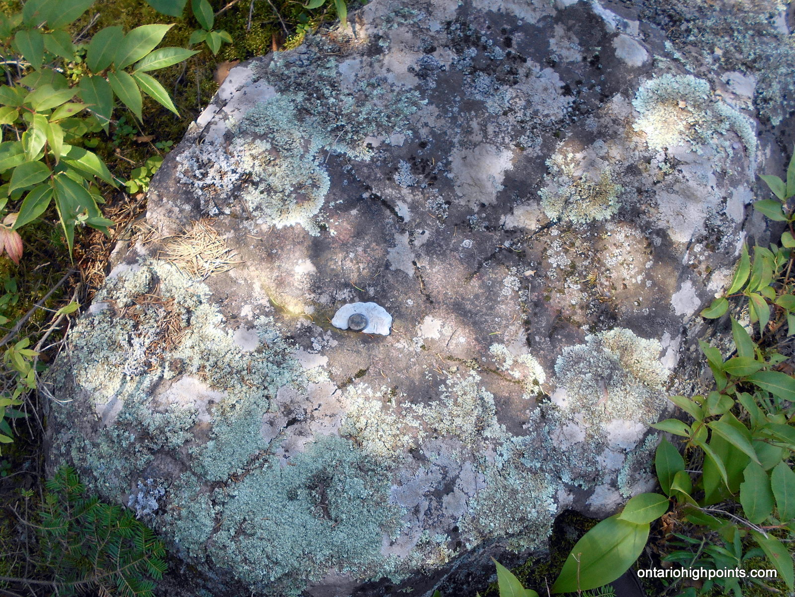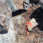 - Survey pin, buried under a rock
