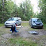 We returned back to the gate on Addie/North Lake Road via the same route. It was a long, hard day, and I felt pretty tired after 10 hours of bushwhacking and crashing through partially overgrown trail. Once back in our vans, we drove east to Hwy 588, then east along Hwy 588. Near Suomi, we managed to find one of the last open campsites at the public (and free) camping area on Whitefish Lake.