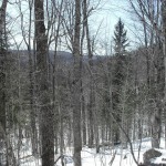 We followed the overgrown trail (which eventually disappeared completely) northeast for 1.5 km and then we continued on by bushwhacking through open woods. At about 500 meters from the start of the bushwhack, we decided to ascend up to the ridge via a small gully which we though would be a more gradual ascent then heading straight up the peak. As we neared the top, our gully route ended up being quite steep and after climbing over the ridge, we found we had to drop back down into Marne Peak’s southern saddle. Luckily the steep climb up was not a complete waste as we got our first glimpse of the summit of Marne Peak.