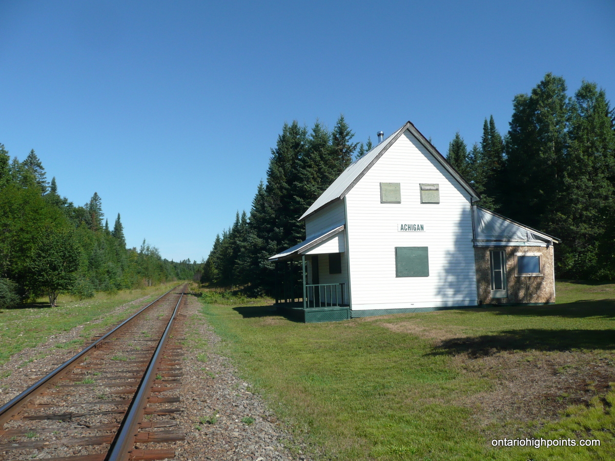 From Sault Ste. Marie, take Highway 17 North and at the junction with Highway 556, turn East. Stay on 556 for 39 km and then turn left on Highway 532 north to Searchmont. Follow Highway 532 through the communities of Searchmont and Wabos for 14.3 km to the end of the road. Turn left onto the dirt road to Achigan Lake.