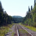 Stay on the main road to Achigan for 17.1 km where it joins up with the old Achigan road. (The old Achigan road is no longer a viable route from HW 532 as from this point back to HW 532 is no longer maintained, contains major washouts and crosses the ACR tracks illegally). Turn right at the intersection and proceed northwest towards Achigan Lake. At the 19.3 km, you pass by the old Achigan Station Section House which is now privately owned. At 21.3 km turn right as the the main road forks to the left. (The main road heads to the south end of Achigan Lake which is a access point for the boat access only camps on the lake.) The road beyond this turn is very rough and is not recommended for anything but high clearance 4×4 trucks and ATVs.