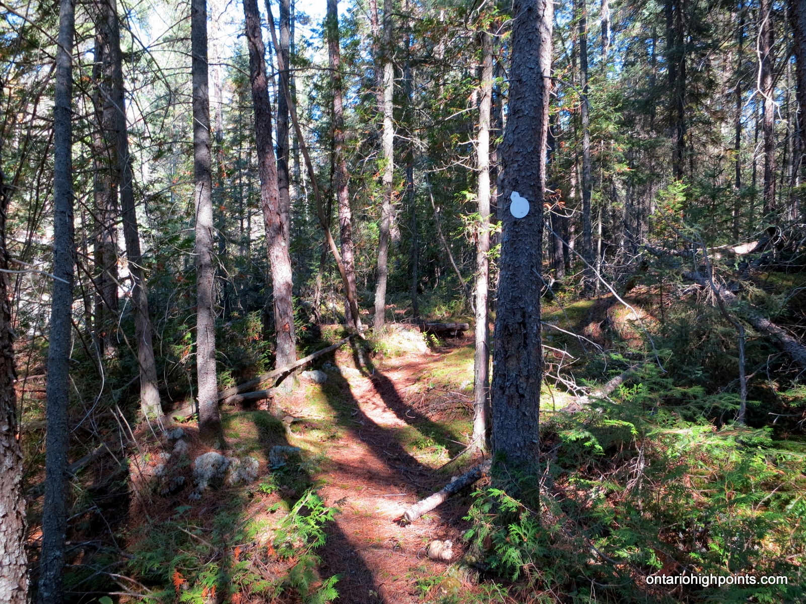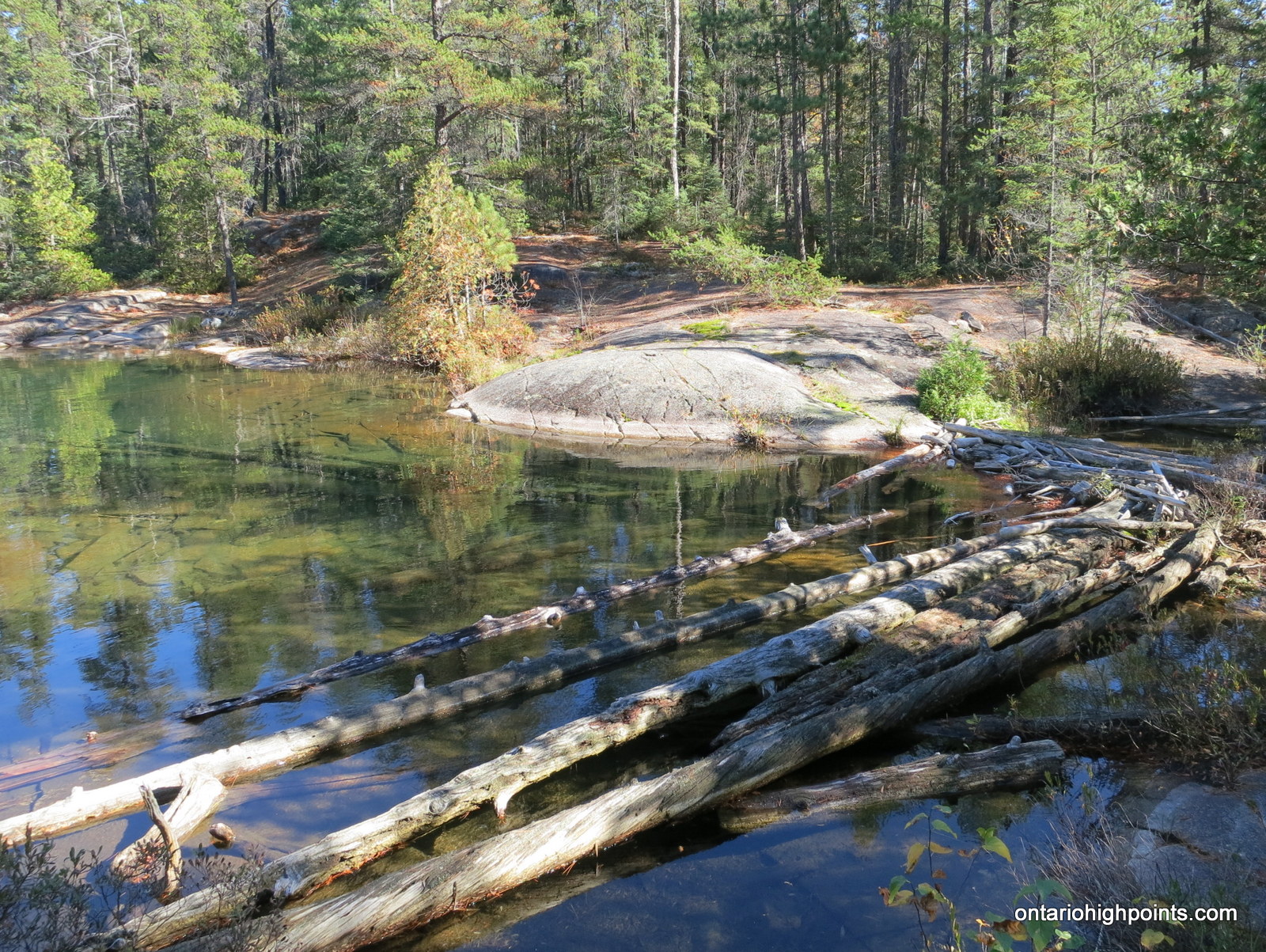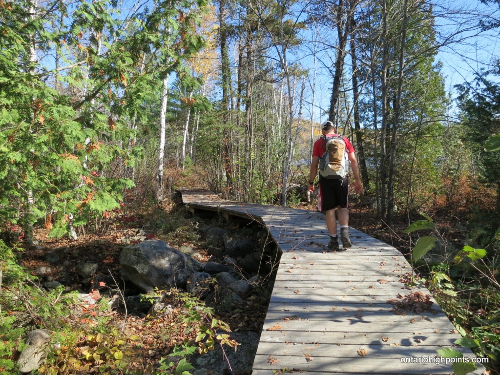 From the intersection with Hwy. 17 at Serpent River, take Hwy. 108 north to Elliot Lake for 27 km. Continue north along Hwy. 108 through Elliot Lake. At Quirke Mine Road, 42 km from Hwy 17, Hwy. 108 becomes Secondary Highway 639. Continue northward along the road for 20 km and pass through Mississagi Provincial Park. The turnoff to the Cobre Lake Trail parking lot lies 62 km from the junction with Hwy 17, just as the road starts to descend into the Little White River valley. Turn right onto the short rough road and make your way east for 250 meters and then turn left at the 3 way intersection and head north for a further 250 meters to the parking area.
