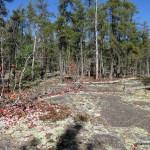 - Lichen on rocks with a jack pine stand in behind