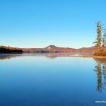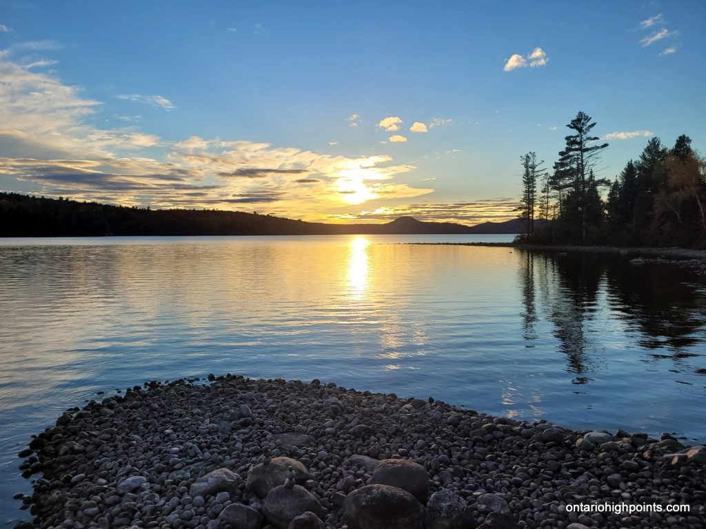 The trailhead to Old Baldy is on the far west side of Flack Lake, about 5.5 km away. Motorized boats are permitted on the lake but I chose to paddle my canoe across the lake. There isn’t much of a boat landing at the trailhead — it’s just a small boulder beach.