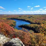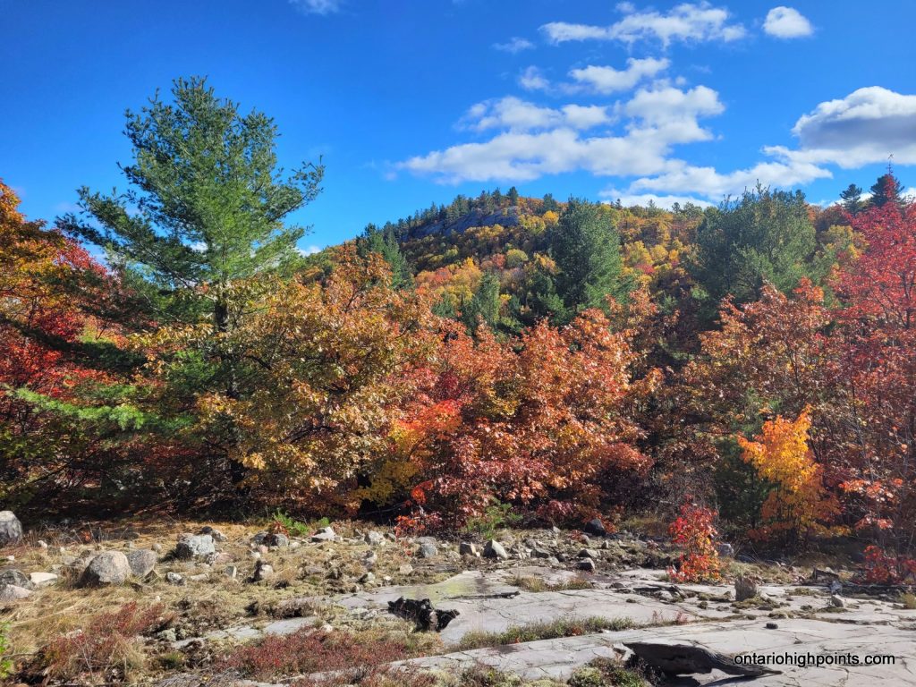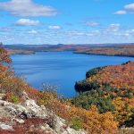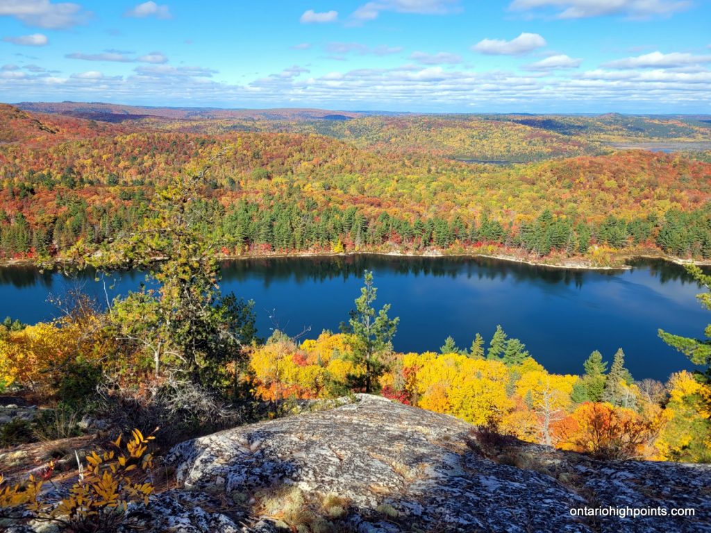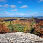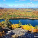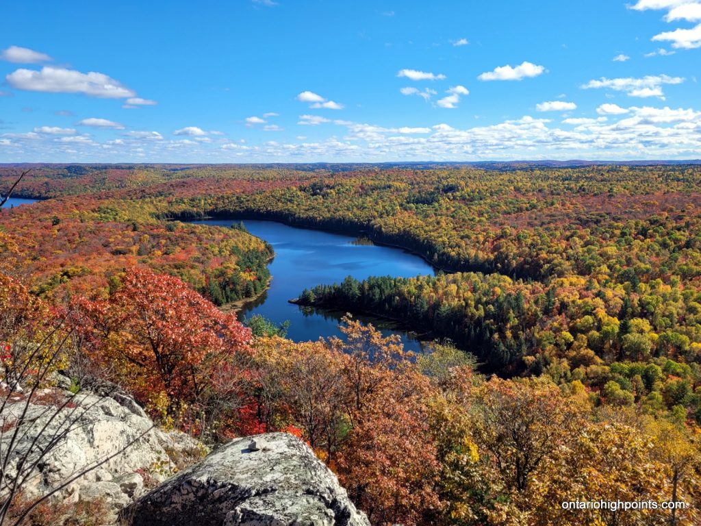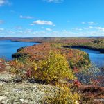 After pulling my canoe up on shore, I began the hike. The Old Baldy Loop trail is fairly well marked and the section that leads directly to the summit (left at the fork) is fairly well travelled. It’s a steep ascent up to the summit area after which the trail follows along the tops of the cliffs until reaching the high point; a rounded off chunk of exposed bedrock. There are impressive panoramic views at the summit.