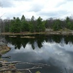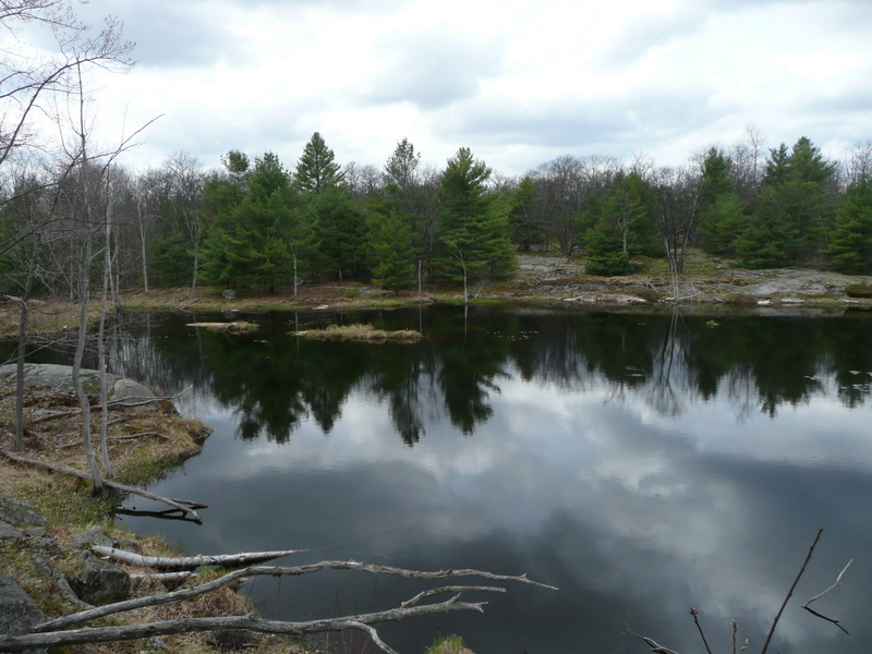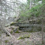 Alternatively, hikers may choose to turn the outing to Scrabble Mountain into a loop hike by parking at the end of Devil’s Lake Road, near the boat launch to Devil’s Lake and shuttling back to Moore Falls. Devil’s Lake Road can be reached by following Deep Bay Road north for 7 km, whose intersection with HW 35 is 400 meters past the Country Cottage intersection. The access trail to Petticoat Junction (the junction with the main Ganaraska Trail) begins on the road just east of the parking area.