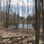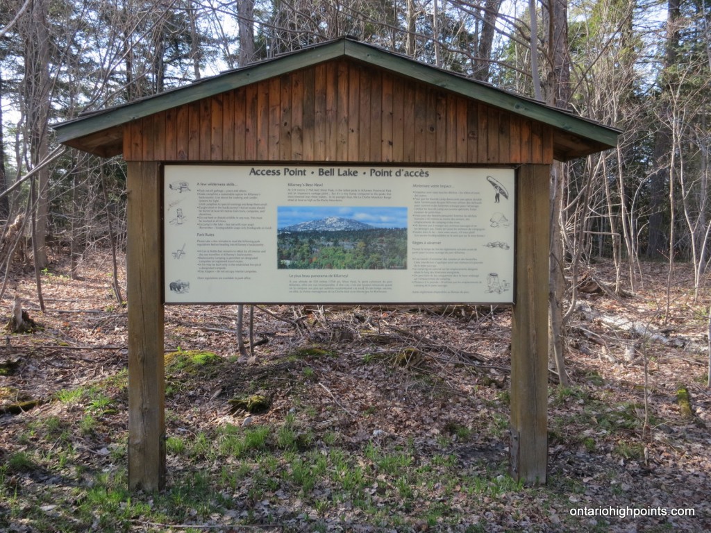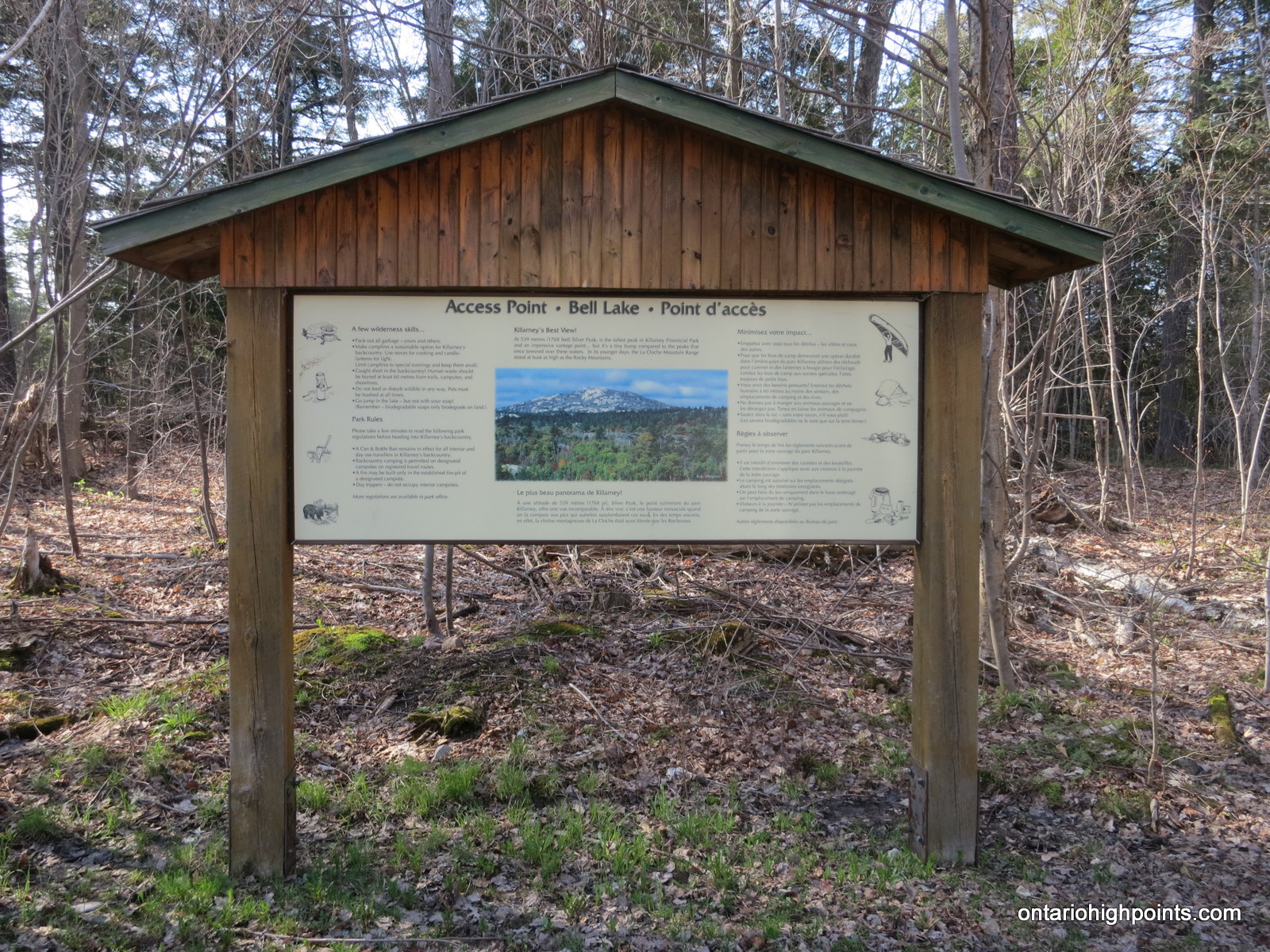 From the Bell Lake Access Point, there are 2 ways to get to Silver Peak. The easiest and most timely way is to canoe from the Bell Lake Access Point to the western Bell Lake narrows where the Silver Peak Trail begins. If one is inclined not to canoe the lake, it is possible to complete this leg of the trip overland. Although portions of the overland route are along an old logging road, as of May 2014, much of the road is completely overgrown with stands of hemlock, or has been completely reclaimed by the forest. Along the overland route, there are 2 water crossings that might be treacherous in high water level conditions such as spring melt runoff. The directions below detail this route: