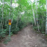 The hike begins on an old logging road that has been converted into a trail. The trail here is wide, level and easily navigated for 1.5 km until joining up with La Cloche Silhouette Trail. Follow the La Cloche Silhouette Trail north (right). At 1.9 km the trail crosses Kakakise Creek and it then follows the western shore of Kakakise lake for about 600 meters after which the trail turns northwest, away from the lake and becomes much more rugged.