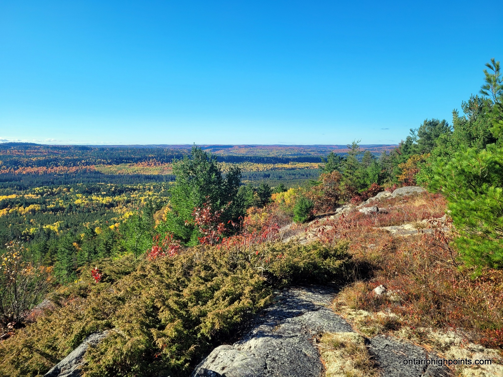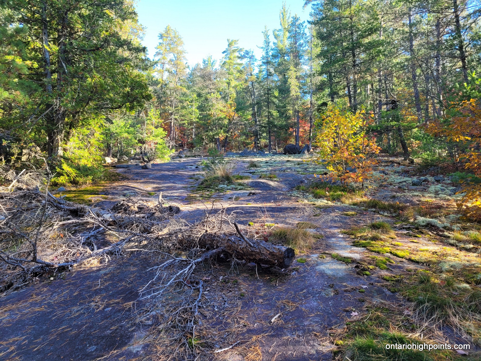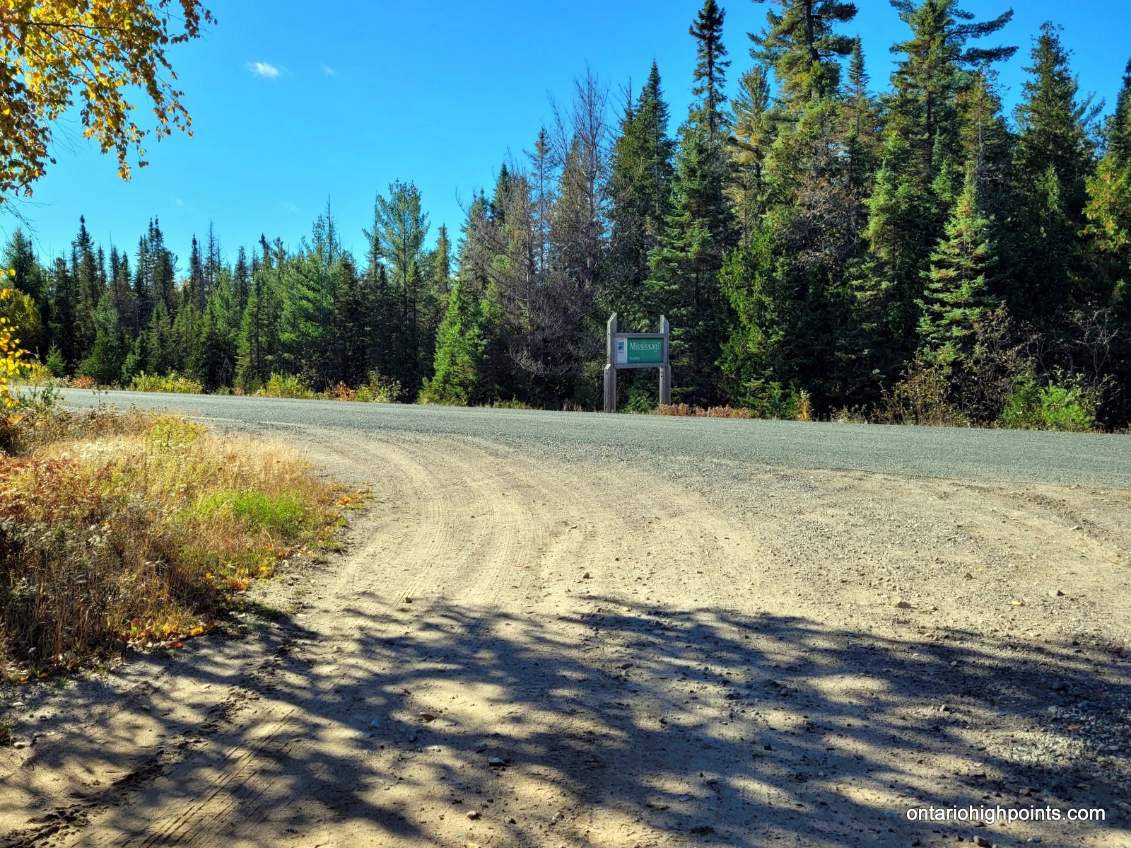 From Elliot Lake, take Hwy 639 north for 32.5 km to the turnoff onto Boland Road. This rough gravel road is situated just outside the northern boundary of Mississagi Provincial Park. Turn left (east) onto the road and follow it 14.4 km. There are a few washouts and a sketchy log bridge (at 7.4 km) that have to be crossed along the route. I roadside parked near a native encampment, which may not be visible from the road, but is just a few meters off the road to the north.