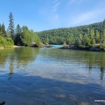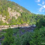The section of the Coastal Trail immediately south of Hattie Cove was clear and pretty easy to follow. We walked across a marshland over a floating boardwalk, over the impressive White River along a cable suspension bridge, and then paralleled the White River to our campsite: HF1, arriving at about 7:30 PM. The site has easy access to water and 2 good tent pads. There was lots of seating around a fire pit, but we stayed at the rocky area at the water’s edge as there was a breeze that kept the mosquitos away.