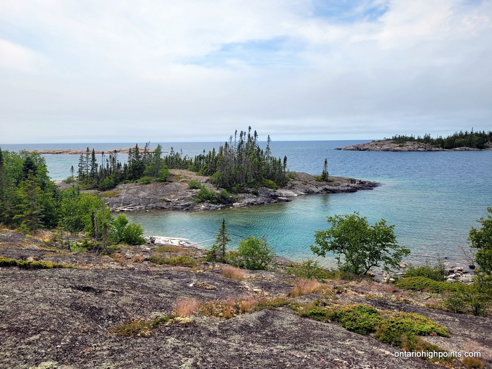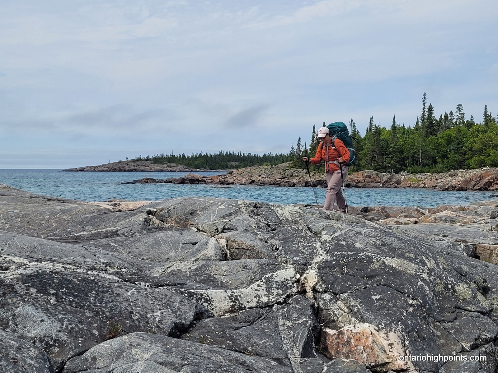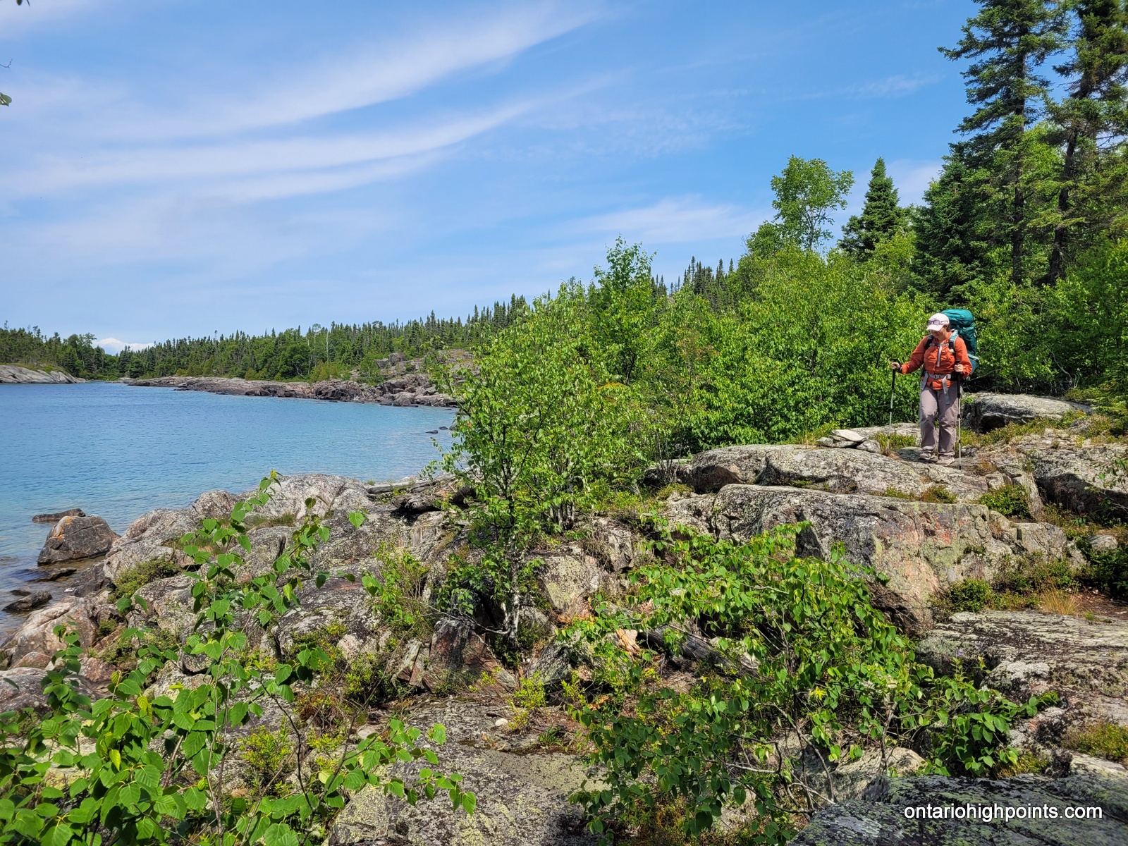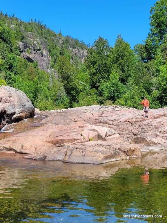The only realistic approach to Tip Top Mountain is from the Pukaskwa Coastal Trail/Lake Superior coast. One can combine the hike to Tip Top Mountain with a multiday backpacking trip along the Coastal Trail from the Hattie Cove campground, or instead use the water shuttle services provided by North Shore Adventures. For our trip we multiday backpacked from Hattie Cove to the White Gravel River. There are various campsites along the trail (some are a bit off of the trail) — all of which need to be booked. We camped at Hook Falls, Fish Harbour and Fisherman’s Cove before arriving at White Gravel River.