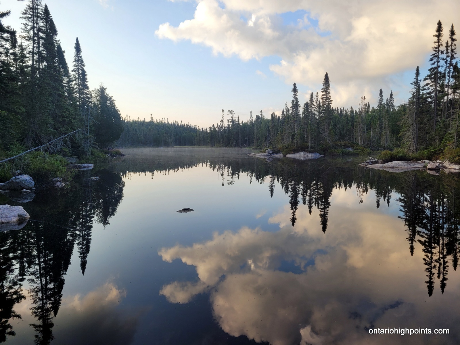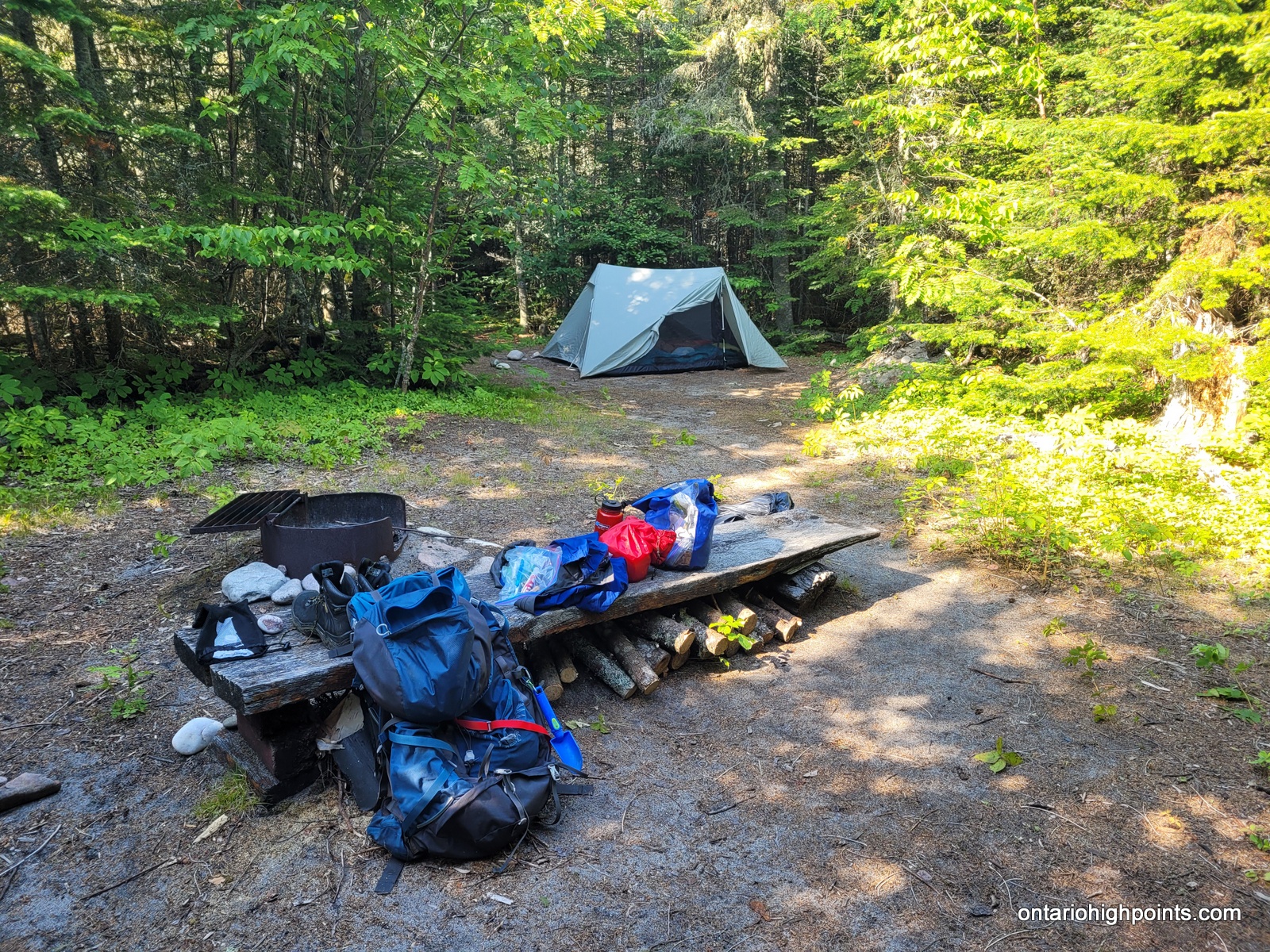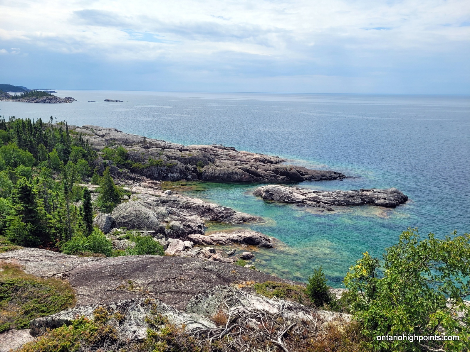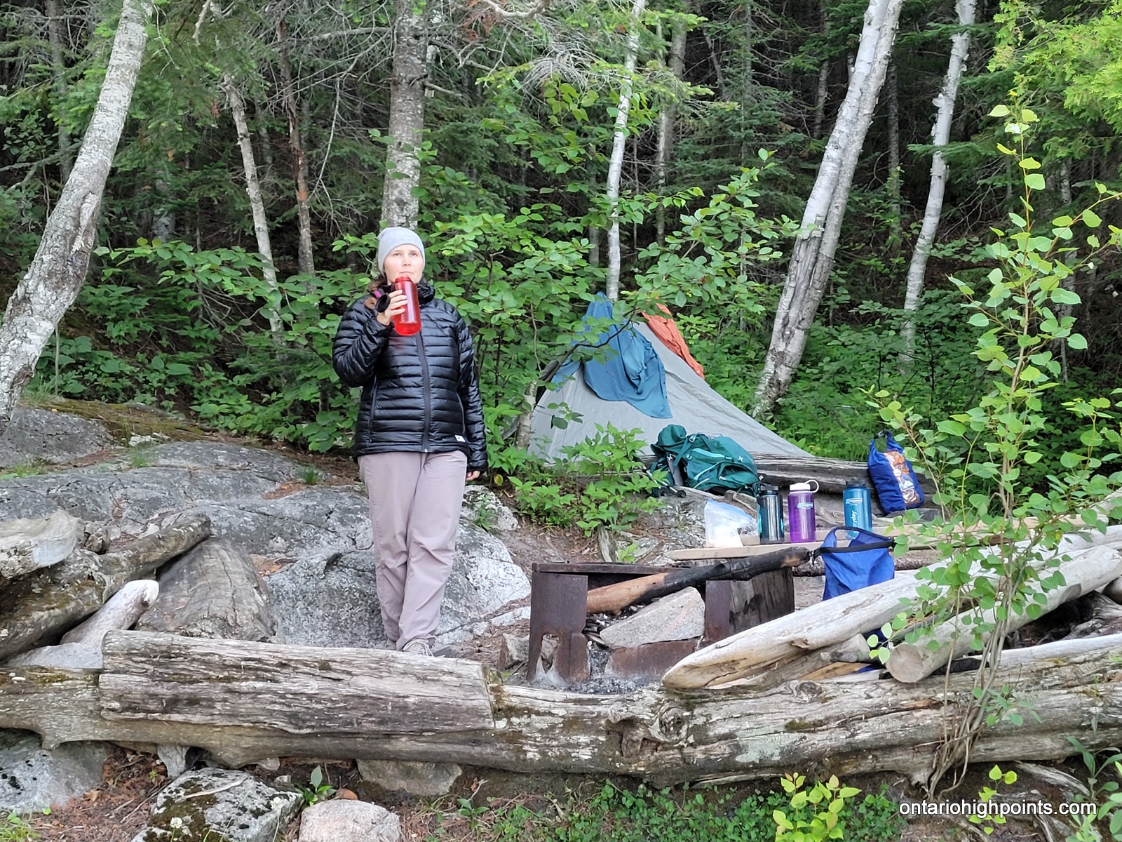The only realistic approach to Tip Top Mountain is from the Pukaskwa Coastal Trail/Lake Superior coast. One can combine the hike to Tip Top Mountain with a multiday backpacking trip along the Coastal Trail from the Hattie Cove campground, or instead use the water shuttle services provided by North Shore Adventures. For our trip we multiday backpacked from Hattie Cove to the White Gravel River. There are various campsites along the trail (some are a bit off of the trail) — all of which need to be booked. We camped at Hook Falls, Fish Harbour and Fisherman’s Cove before arriving at White Gravel River.