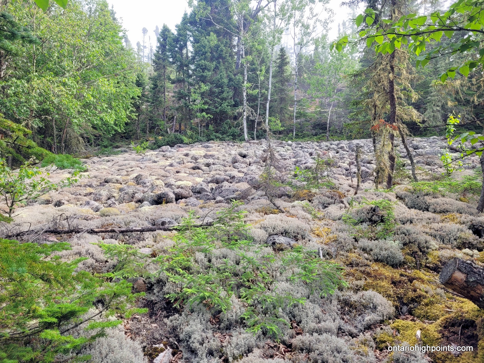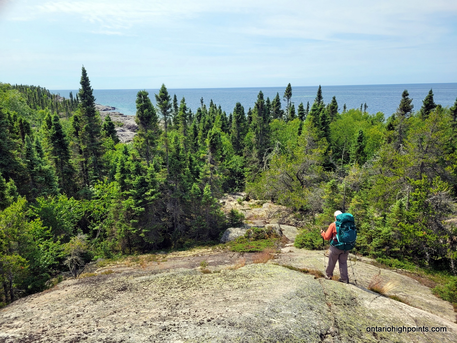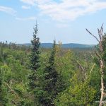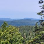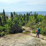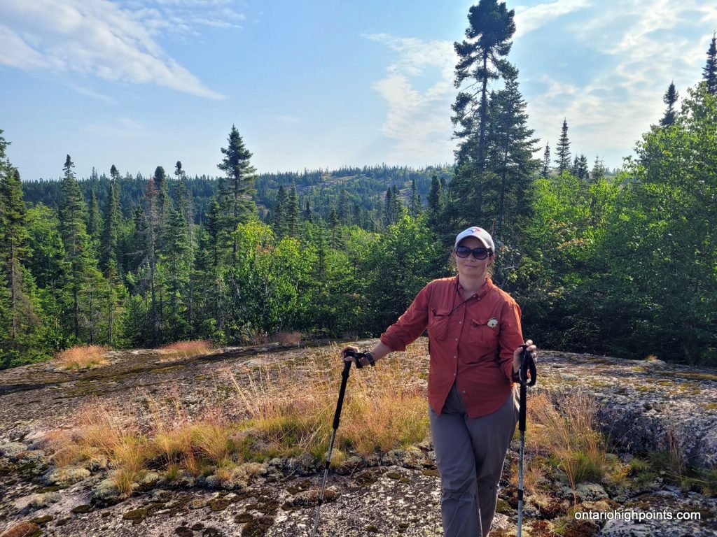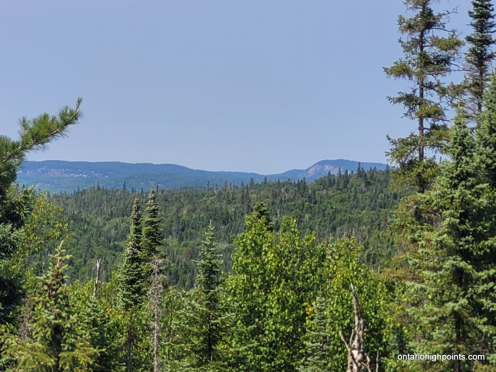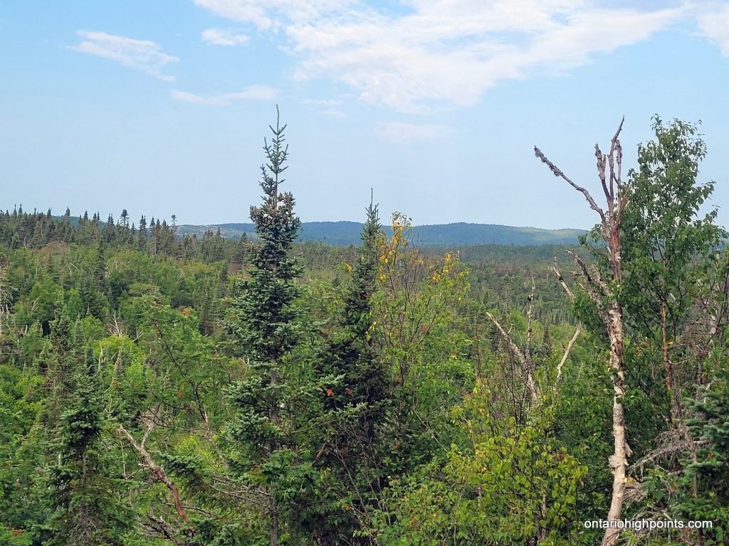 During my summit exploration, I found a good viewpoint about 80 meters south of the summit. It was a little hazy but we still got good views of the southern hills and could make out Lake Superior to the southwest.