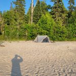 We descended back down the creek, navigated around the 4 remaining ponds and then down through the narrow canyon sections. After a few more kilometers we rejoined the main White Gravel River. A little while later, we arrived back at the shore of Lake Superior. It was 5:10 PM when we strolled into WGR3, our campsite for the night. It had been a long day.