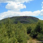 The peak is a flat-topped ridge, with steep slopes and cliffs surrounding the central plateau. The summit is a very broad flat area with lots of clearings and debris from an old tower. You can see the tower footings, the wreckage of the wooden observation box, old cables, and electrical junk lying around. There are no views at the summit, but if you make your way west for 150 meters you will come to the top of the cliffs where you’ll be able to get a nice vista of the surrounding area.