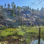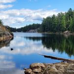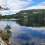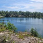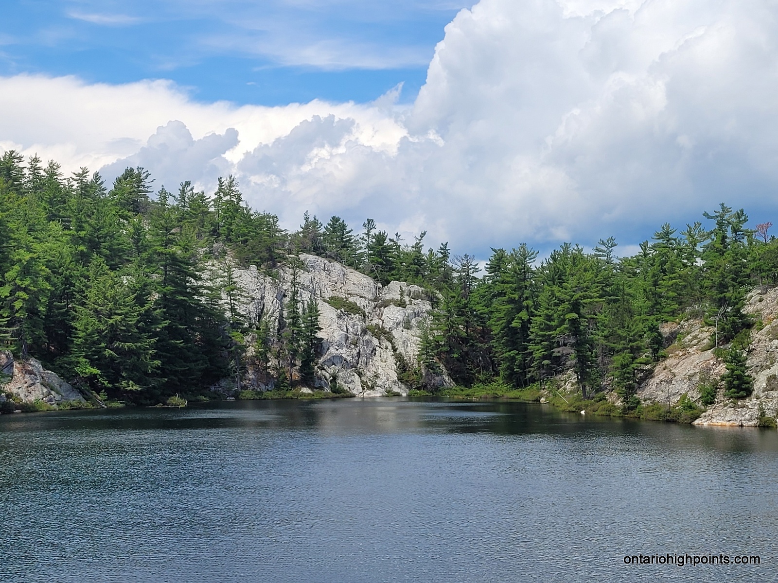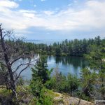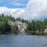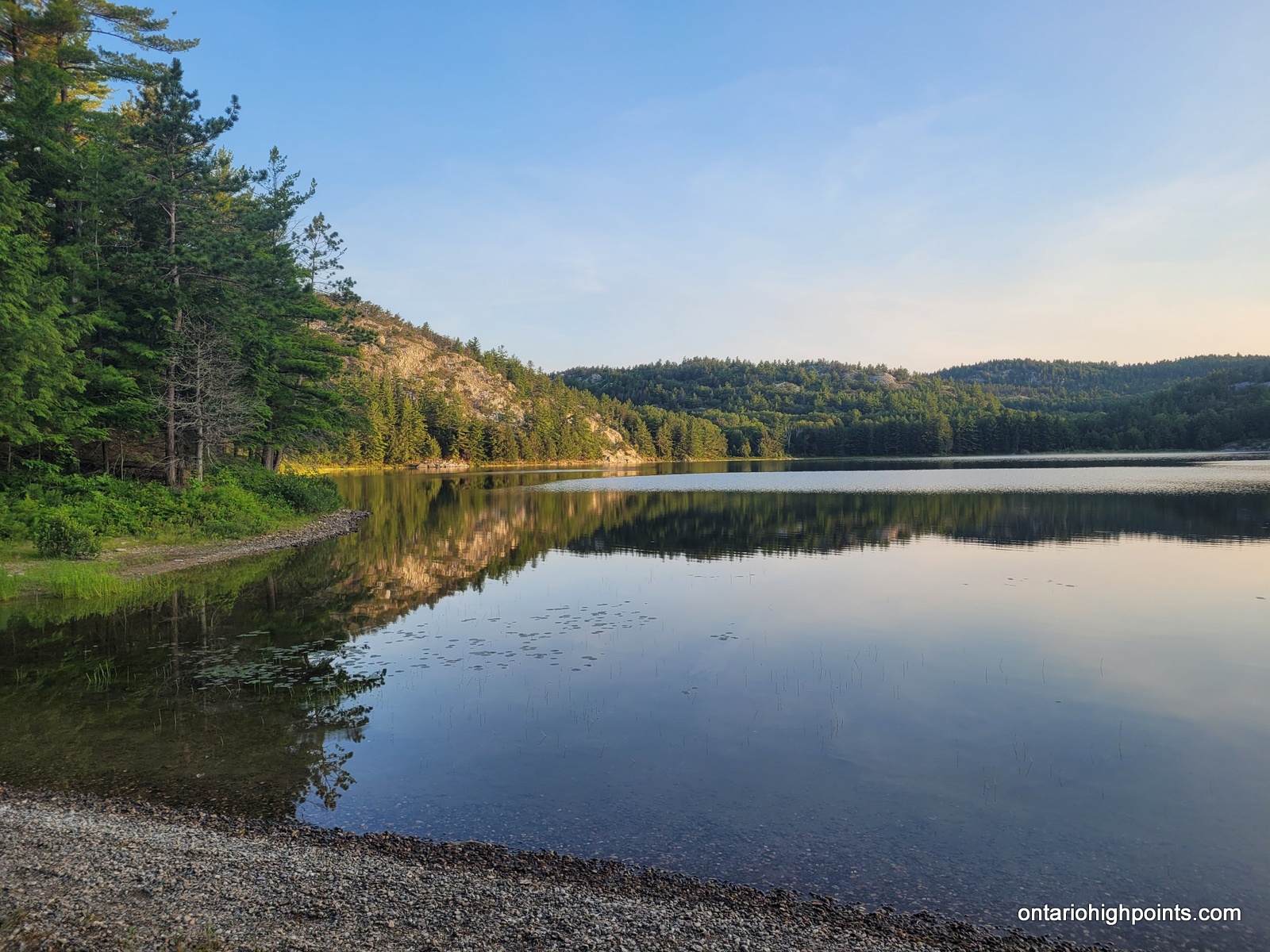 Once back at camp, I packed up and resumed my hike east along the Heaven’s Gate Trail. After ascending back up the ridge, my first stop was at White’s Lake. The trail traverses numerous ups and downs along the ridgeline. 2 km from the campsite on White’s Lake, the trail passes near another photogenic unnamed lake. Nearing Wright’s Lake, the trail steeply descends down a boulder strewn chute — similar to the final bouldery ascent up to The Crack in Killarney. Wright’s Lake is less than 1 km away from the bottom of the chute.