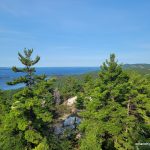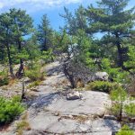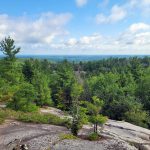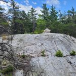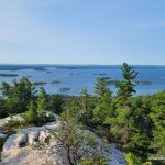 White Mountain is situated within La Cloche Provincial Park and ranks as one of the highest peaks in the western La Cloche Mountain Range. Although there are no established trails leading to the summit, the Heaven’s Gate (Kitchitwaa Shkwaandem) Trail comes within 1.5 km (northwest) of the peak. Adventurers can take a side trip to bushwhack their way to the mountain during a multiday backpacking trek along this trail. The mountain features two potential high points: an east peak and a west peak. Unofficial GPS measurements indicate that the east peak is slightly higher. From the summit, hikers can enjoy stunning views of Lake Huron’s North Channel.