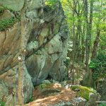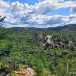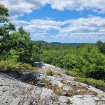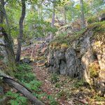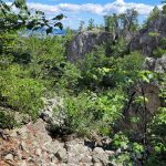 It rained on and off during the night but luckily stopped in the early morning. I left my tent and most of my gear back at the campsite and began a bushwhack southeast towards White Mountain. Initially, the ascent was fairly moderate, but as I got closer the summit the ascent steepened. There were a few steep rock faces that I had to scramble up or had to be avoided entirely. I also had to be careful not to get cliffed out. I occasionally encountered some orange tape flags, but I wasn’t sure where they led and so didn’t follow them too far.