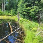 After crossing a rugged ridgeline, the trail turns south and descends towards Lake Huron and leads to a marshy area with a beaver pond. The trail is not well defined, nor well marked here. There are a few blazes here and there and they are often contradictory. I followed the trail as it made a U-shaped path back to the north, however there might be a short cut across the top of the U at the coordinates: N46.1029, W82.0254.